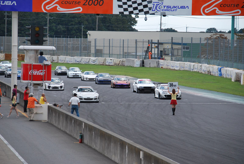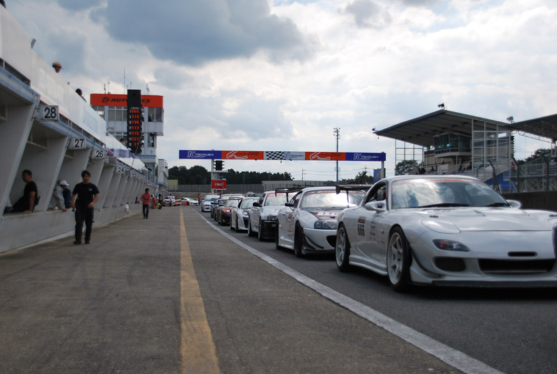 予選結果はと申しますと、夢デモカー・1位 田代スープラ・2位 M”FD・5位 くるくる元祖FD・6位 と言う順位となりました。 因みに田代スープラはサーキットには、まだまだ珍しいAT車です。 そして、決勝スタート!!です。
