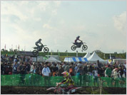 大勢の観客と声援の中、選手達もヒートアップ!バイクはオーバーヒートしないでネ。