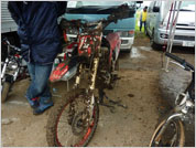 泥まみれのバイクがレースの過酷さを伝えてます。