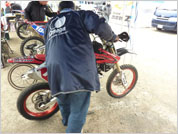 バイクの点検をするのは、茨城県のバイクショップ「shok」の代表であり、倉持 陵生選手のお父様でもあります倉持 昭一様です。